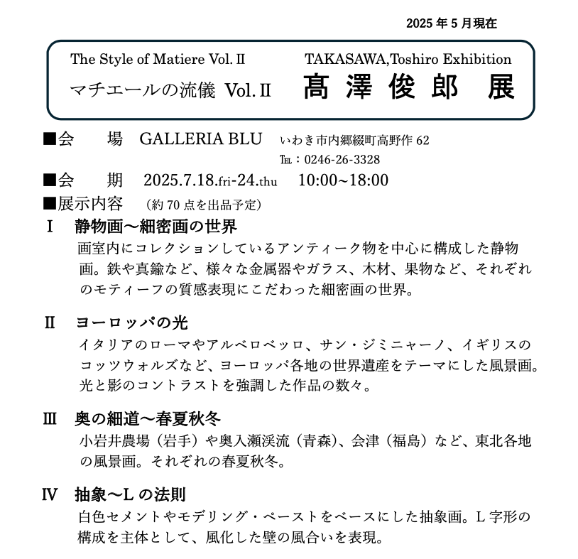 マチエールの流儀Vol Ⅱ 髙澤俊郎展